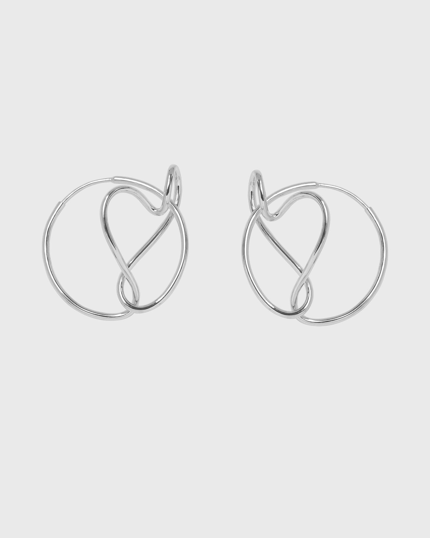 SWEETHEART EARRINGS は抽象的なラインで描かれたフープピアスで、見る角度によって、繊細なハートのシルエットがふわりと浮かび上がります。