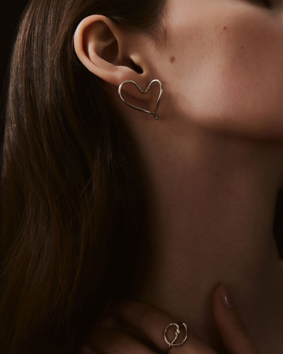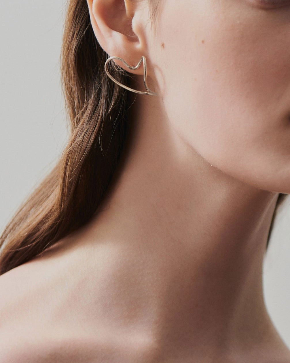 クラシックなハートモチーフを、抽象的かつ流れるようなラインで再構築した DANCING HEARTS EARRINGSは、とても軽やかな着け心地で、首のラインを美しく見せてくれます。