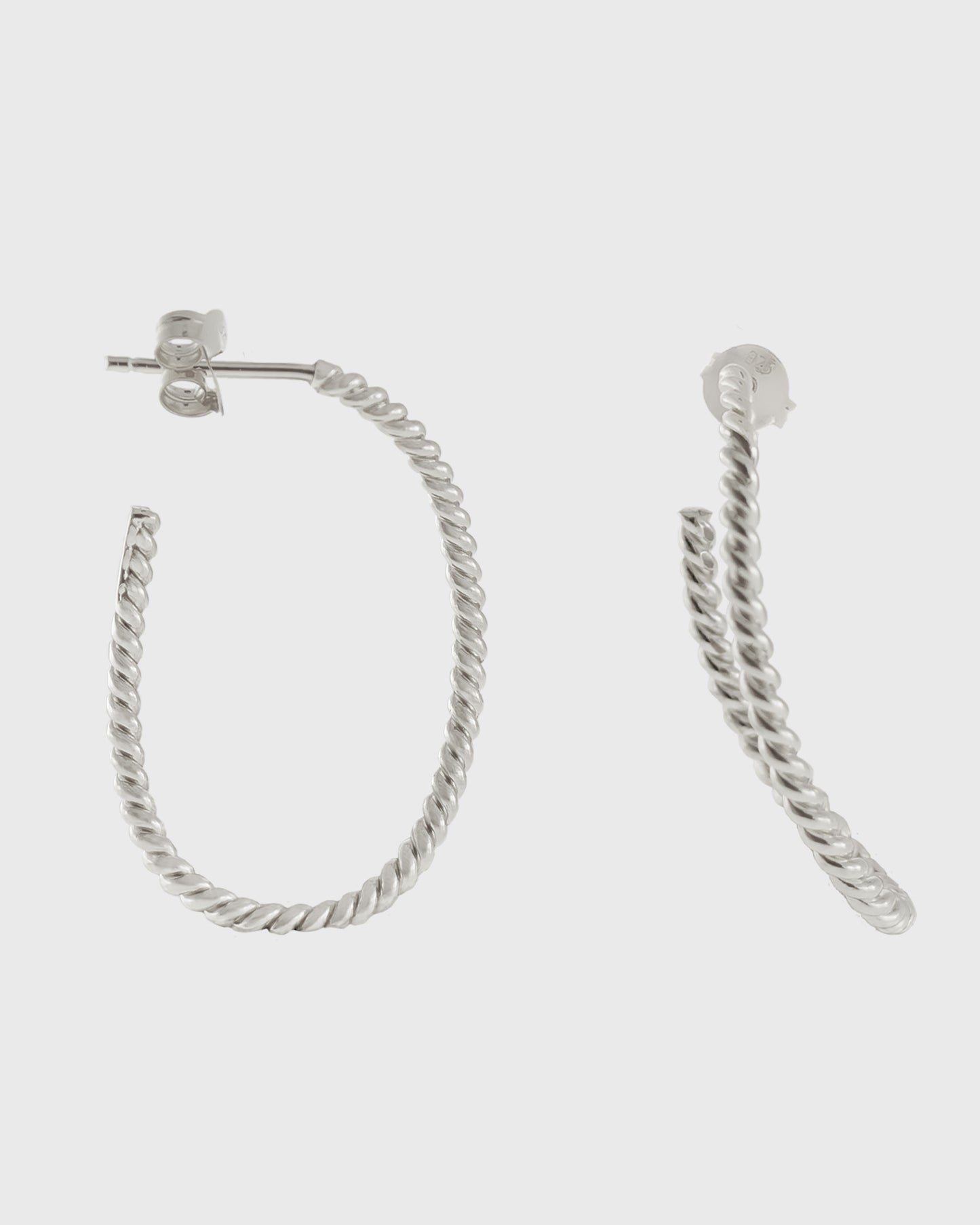 TWISTED ELONGATED HOOP EARRINGS | Silver