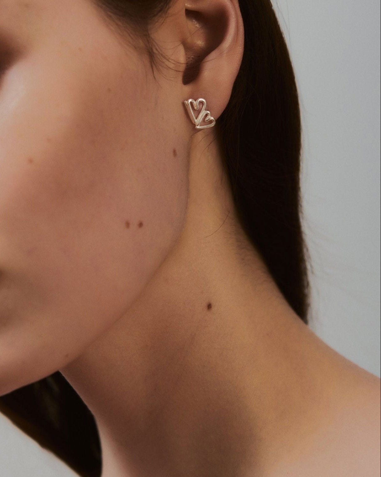 繊細につながれたハートモチーフの TWO HEARTS EARRINGS は、一体感を象徴し、どこか懐かしく、遊び心も感じさせるデザイン。ギフトとしても最適です。