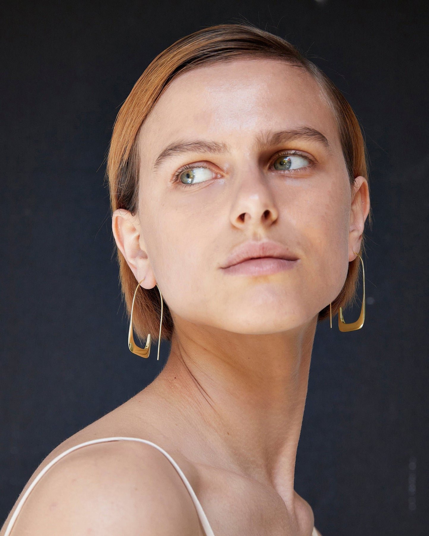 陶芸家ロバート・デブランダーの作品にインスピレーションを得た、90年代のミニマルなエッジが光るステートメントイヤリング。