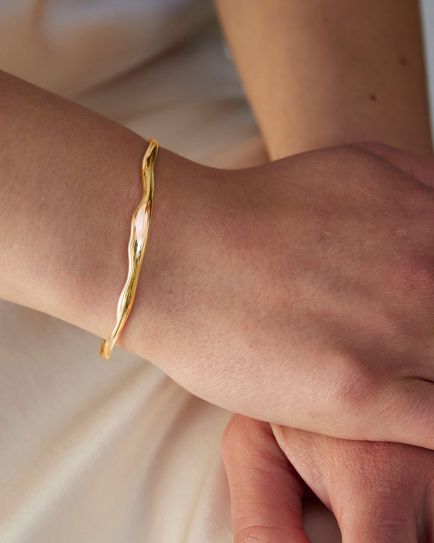 モダニズムの巨匠、特にジャン・アルプの作品から影響を受けた、流れるように滑らかなフォルムが特徴のバングル。