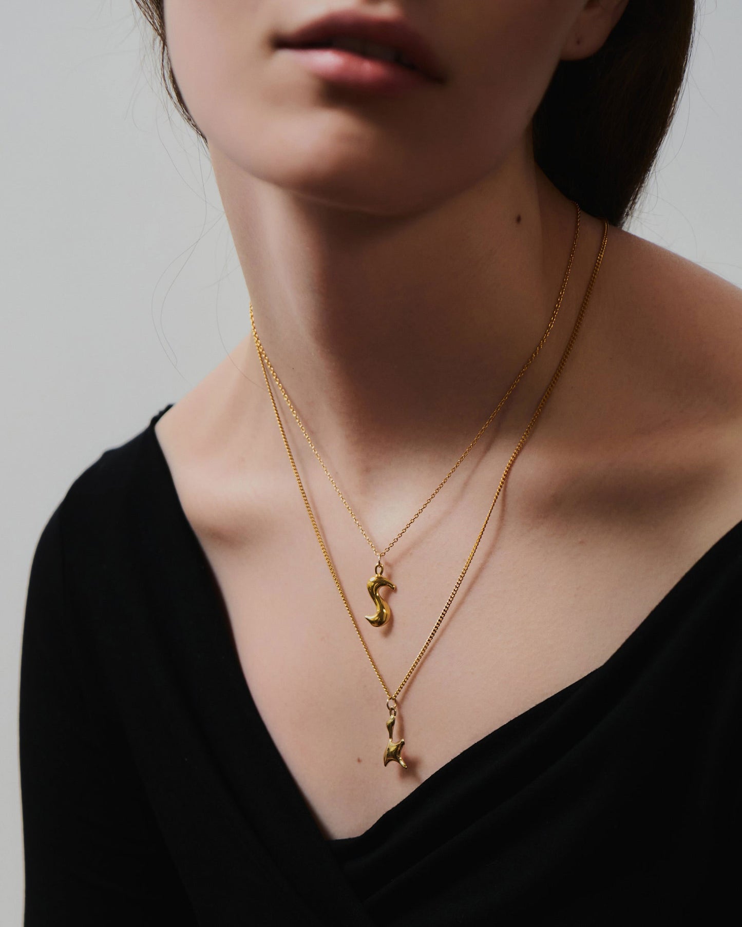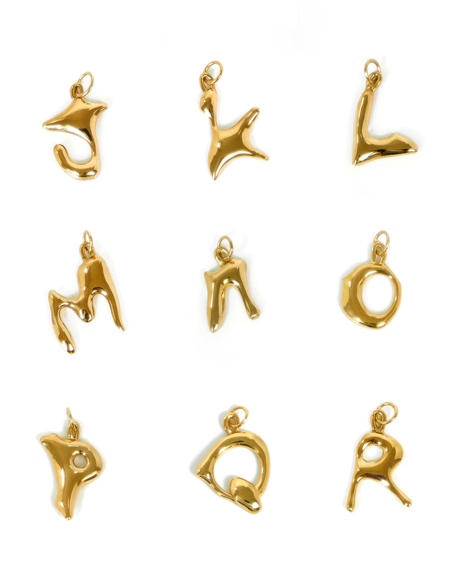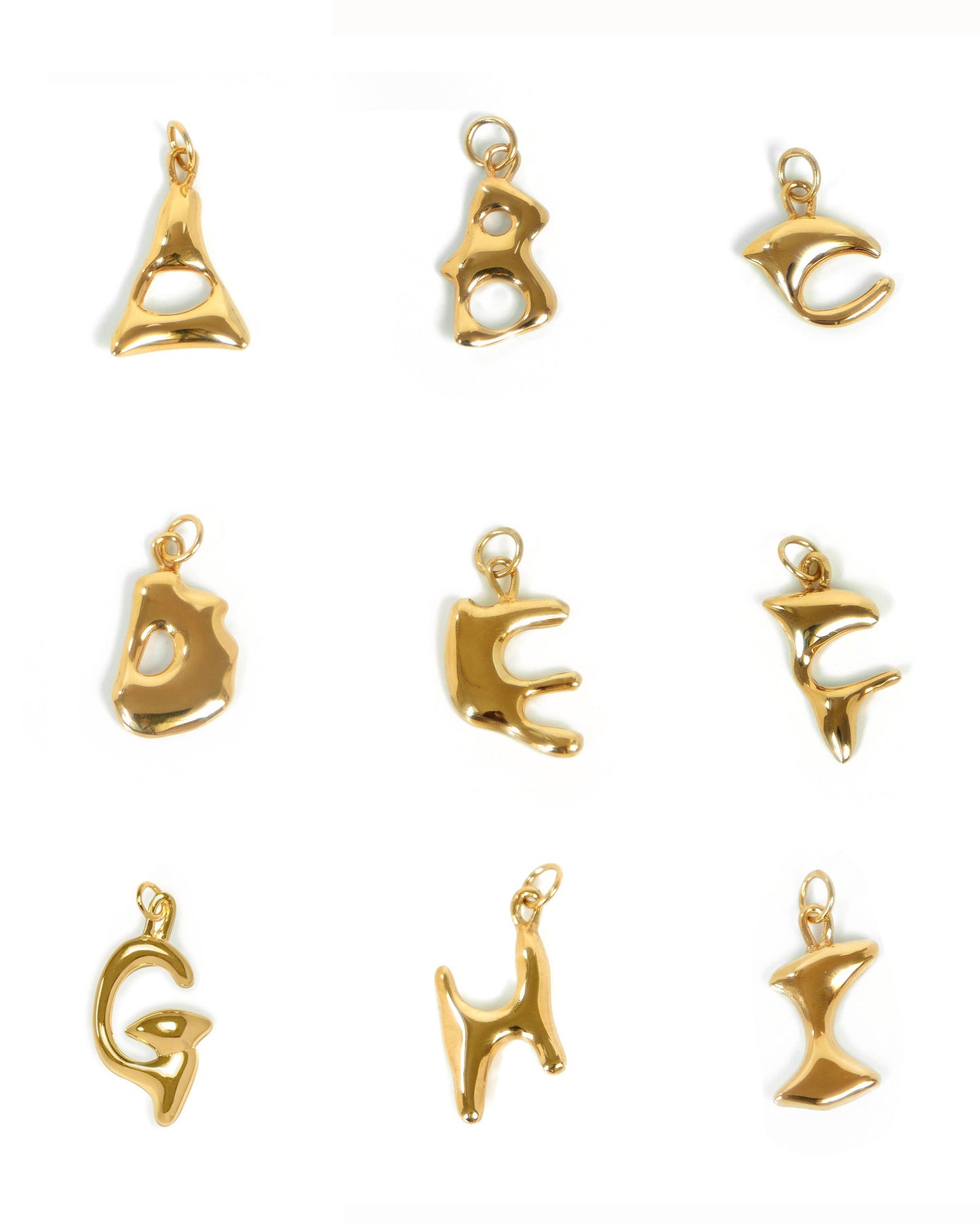 ALPHABET CHARM は、溶かしたワックスで一文字ずつ手描きするように形づくられたデザイン。