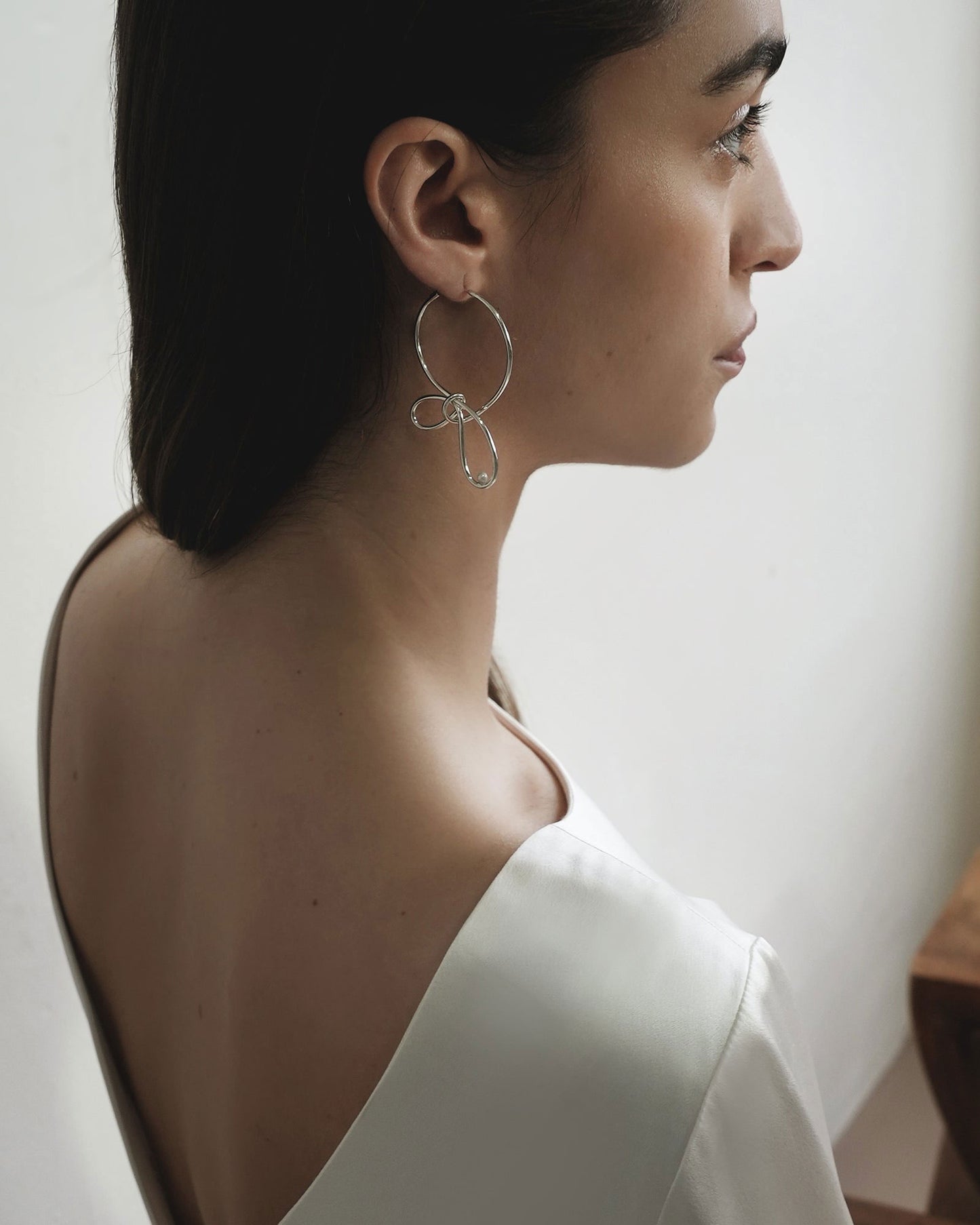 FIOCCO EARRINGS は、クラシックな結び目のリボン(Fiocco はイタリア語で「リボン」の意)からインスピレーションを得たデザイン。